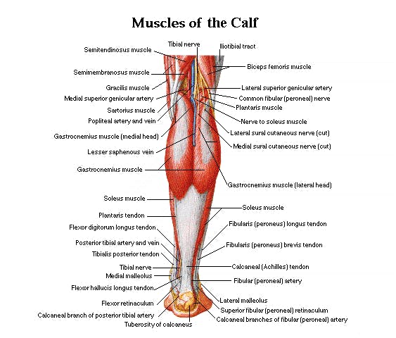 - ventre anteriore o muscolo soleo, che origina sulla superficie posteriore della testa del perone e sul terzo postero-superiore della diafisi peroneale, sulla linea poplitea della tibia e dall’arcata del soleo.
