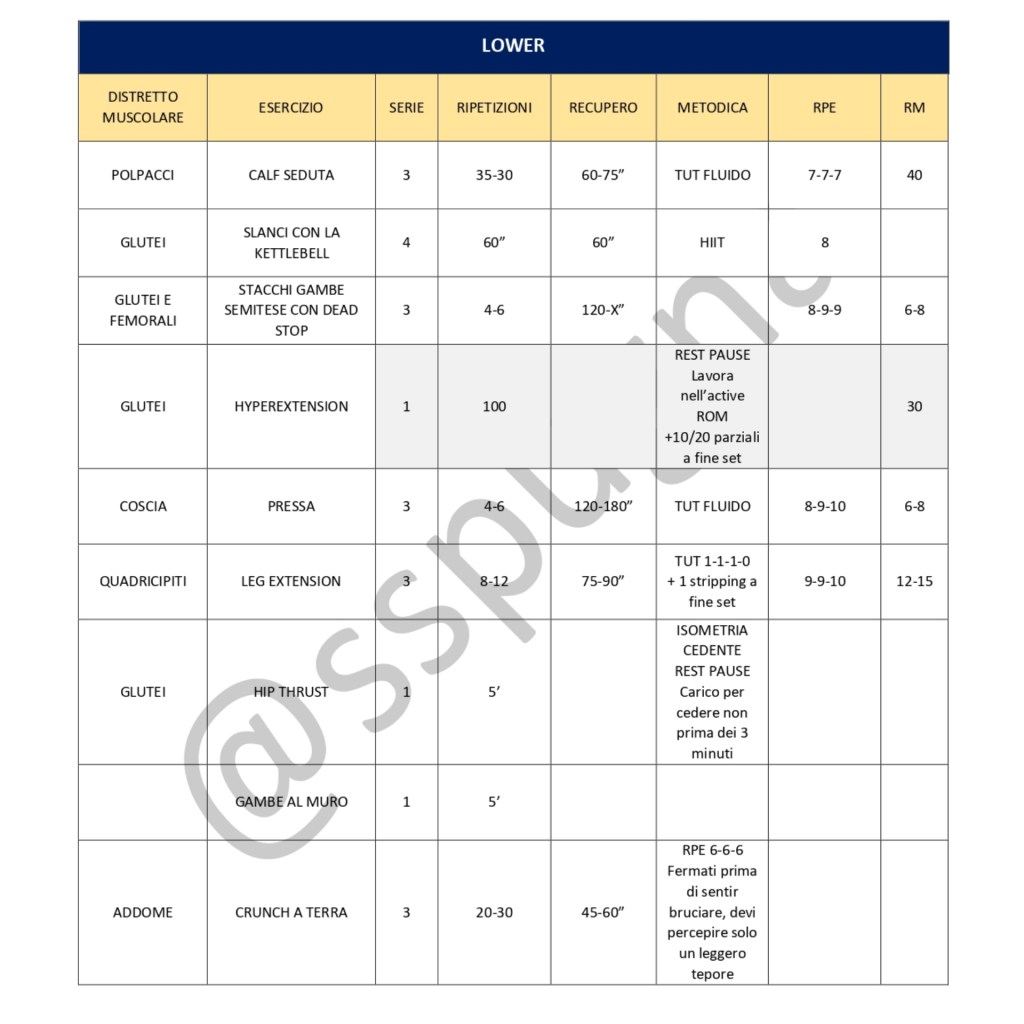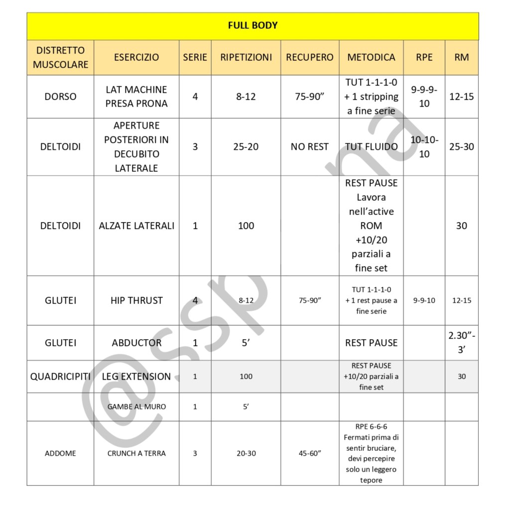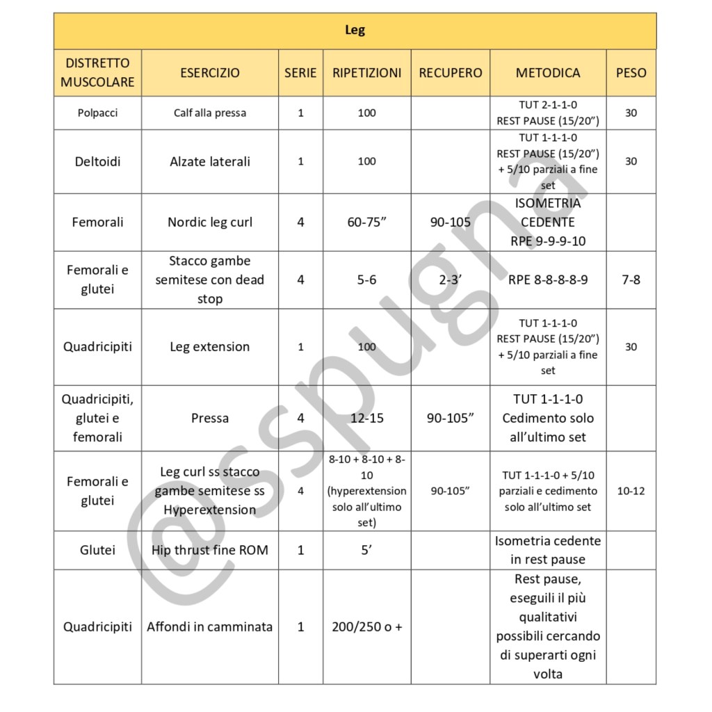 Nel giorno di lower body ed in parte nella full body, sono inseriti e spalmati tutti gli stimoli sopra citati ed oltre a questo, coi due giorni in cui effettuiamo i lavori di accumulo, andiamo ad avere uno stimolo completo.