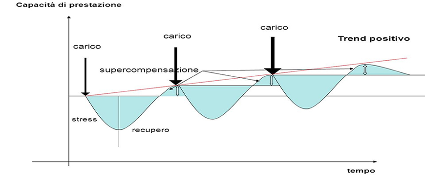La supercompensazione è la capacità del corpo di sopperire ad uno stimolo esterno, generando adattamenti che lo portino ad “evolversi” in senso positivo, verso lo stimolo ricevuto.
